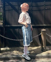 レースやリボンを付け、デコラティブなデザインのデニムパンツ。トレンド感&バランスが取りやすいニーレングス。ウエストは後ろがゴム仕様でリラクシーな履き心地。程よい厚みの8.5オンスのデニムを使用しシーズンレスでご着用いただけます。カジュアルガーリーな着こなしのアクセントにピッタリです♡・ ・・・・・・・・・ ・・・・・・・・・透け感:なし・伸縮性:なし・生地の厚さ:普通・裏地:なし・ポケット : あり・ ・・・・・・・・・ ・・・・・・・・