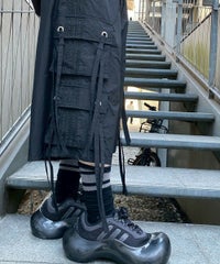 フラップポケットのハトメから垂らした長い紐がアクセントに。