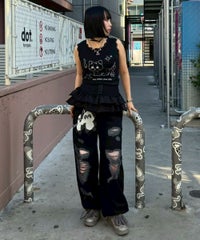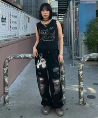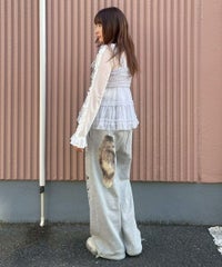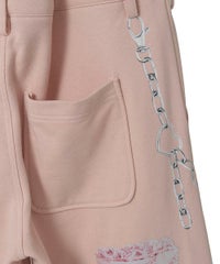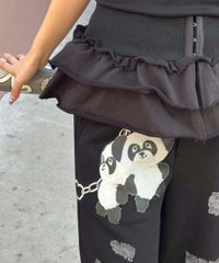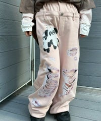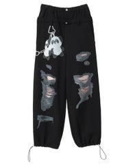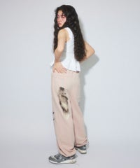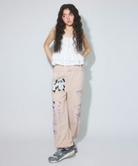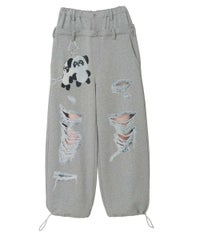 オリジナルキャラクター”PEPEちゃん”のチャームやチェーン、ファーのしっぽ、ダメージ穴等を全てインクジェットプリントで表現し、騙し絵風に仕上げたスウェットパンツです。トレンドのサギングスタイル(腰パン) 風に履きこなせるよう、ダブルウエスト仕様を採用する等、形にもこだわった一着。ウエストはぐるりゴム、裾はお好みで絞れる仕様になっております。・・・・・・・・・・・・・・・・・・・・・・・透け感:なし・伸縮性:あり・生地の厚さ:普通・裏地:なし・ポケット:あり・・・・・・・・・・・・・・・・・・・・・・