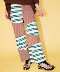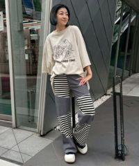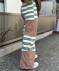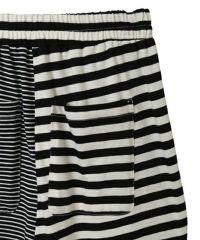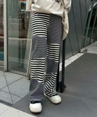 2種類のボーダーを組み合わせたリメイク風のディティールが目を惹くイージーパンツ。 程よい薄さの天竺素材を使用することで軽やかな履き心地を実現。 脚のラインが出過ぎない程よいワイドなシルエットでスタイルアップ効果も期待できます。 オーバーシルエット〜コンパクトなポップスまで様々なトップスとの相性も◎ シーズンレスでご着用いただける万能アイテムです。