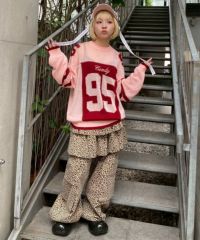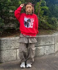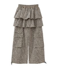 ティアードスカートとパンツを組み合わせたトレンド感のある レイヤード風デザインがインパクト大なパンツ。 ウエスト部分はゴム仕様でリラクシーな履き心地に。 裾とウエストの内側にドローコードを通しておりサイズ調節が可能。 脚のラインが出過ぎない程よいワイドシルエットもに仕上げました。 両サイドに付けた大きめのフラップ付きポケットもポイント。 レオパード柄のツイル素材を使用し”グランジ”なムードを演出。 グランジ×ガーリーな着こなしをお楽しみください。 ・・・・・・・・・・・・・・・・・・・・・・ ・透け感:なし ・伸縮性:なし ・生地の厚さ:やや厚い ・裏地:なし ・・・・・・・・・・・・・・・・・・・・・・