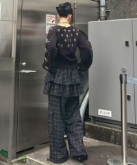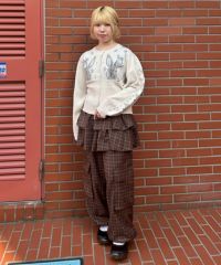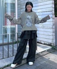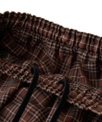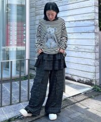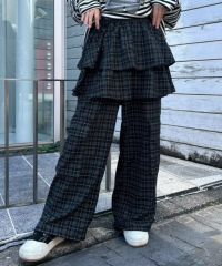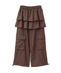 ティアードスカートとパンツを組み合わせたトレンド感のある レイヤード風デザインがインパクト大なパンツ。 ウエスト部分はゴム仕様でリラクシーな履き心地に。 裾とウエストの内側にドローコードを通しておりサイズ調節が可能。 脚のラインが出過ぎない程よいワイドシルエットもに仕上げました。 両サイドに付けた大きめのフラップ付きポケットもポイント。 ポップすぎないダスティなカラーリングのチェックを使用しました。 グランジ×ガーリーな着こなしをお楽しみください。 ・・・・・・・・・・・・・・・・・・・・・・ ・透け感:なし ・伸縮性:なし ・生地の厚さ:薄い ・裏地:なし ・・・・・・・・・・・・・・・・・・・・・・