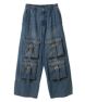フロントに付けたベルト付きの大きめのフラップポケットがインパクト大なデニムパンツ。 両サイドにスラッシュポケット・バックにパッチポケットを付けており機能性も◎ 程よいワイドなシルエットで小慣れ感を演出。ウエスト部分はゴム仕様でリラクシーな履き心地に。 内側にドローコードを通しておりサイズ調節が可能。 厚みのある10.3オンスのデニムを使用しておりシーズンレスでご着用いただけます。 ストリートスタイル はもちろん、モードなスタイリングにもぴったりです。 ・・・・・・・・・・・・・・・・・・・・・・ ・透け感:なし ・伸縮性:なし ・生地の厚さ:普通 ・裏地:なし ・・・・・・・・・・・・・・・・・・・・・・