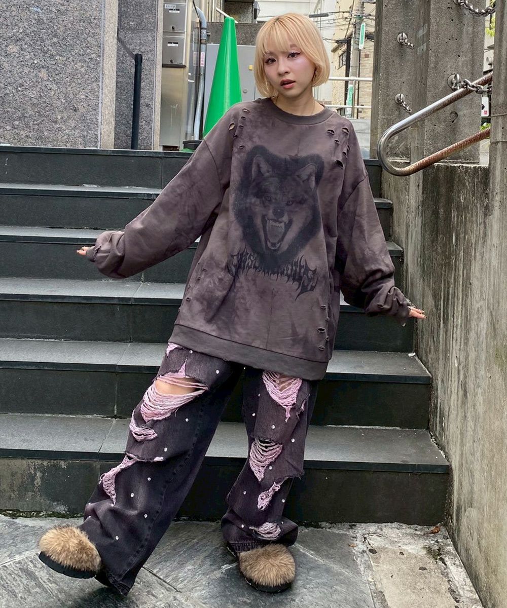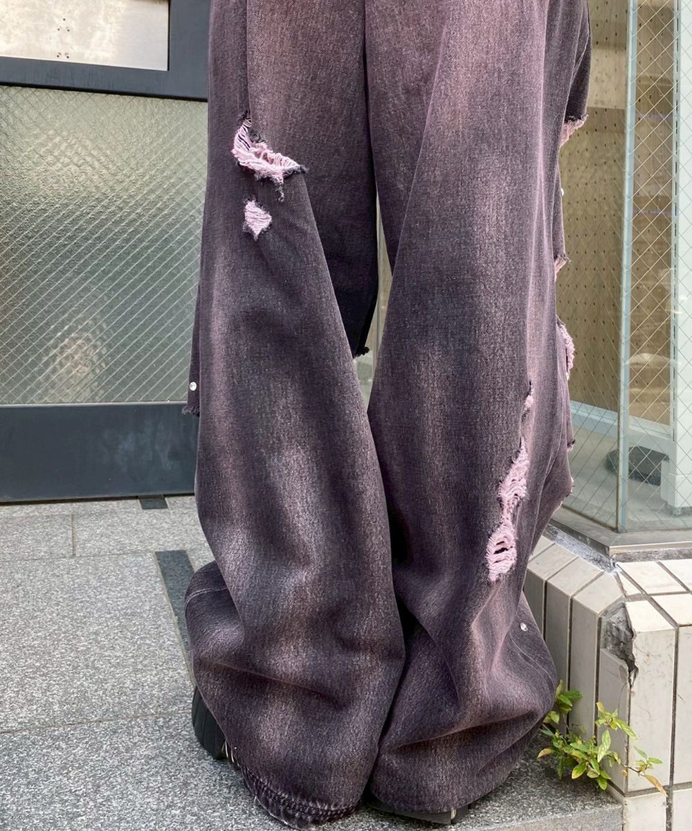 CURVE DAMAGE DENIM PANTS