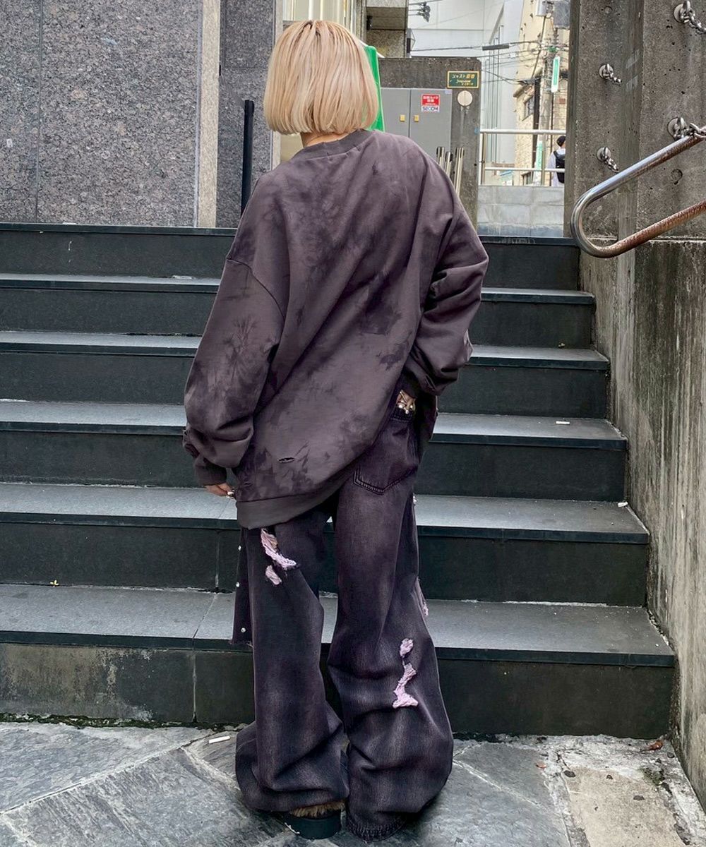 DAMAGE LAYERED DENIM PANTS