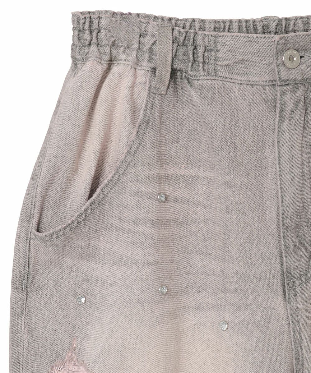 HEART OPEN FRILL DENIM PANTS