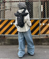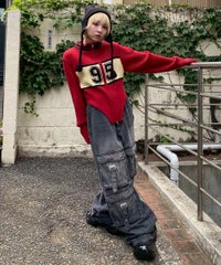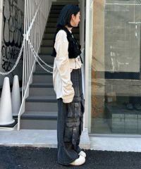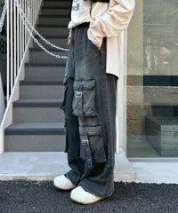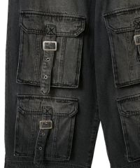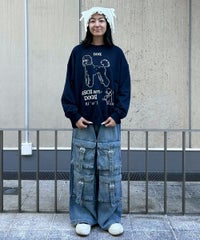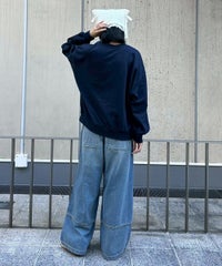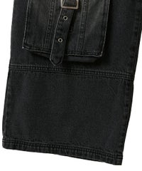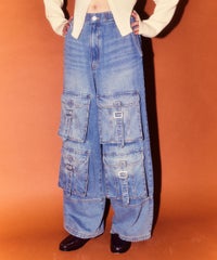 フロントに付けたベルト付きの大きめのフラップポケットがインパクト大なデニムパンツ。 両サイドにスラッシュポケット・バックにパッチポケットを付けており機能性も◎ 程よいワイドなシルエットで小慣れ感を演出。ウエスト部分はゴム仕様でリラクシーな履き心地に。 内側にドローコードを通しておりサイズ調節が可能。 厚みのある10.3オンスのデニムを使用しておりシーズンレスでご着用いただけます。 ストリートスタイル はもちろん、モードなスタイリングにもぴったりです。 ・・・・・・・・・・・・・・・・・・・・・・ ・透け感:なし ・伸縮性:なし ・生地の厚さ:普通 ・裏地:なし ・・・・・・・・・・・・・・・・・・・・・・