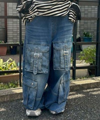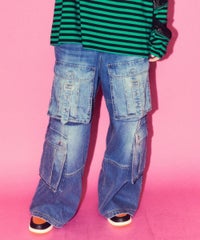 大きめのポケットがアイコニックなデニムパンツ。 ワイドシルエット&ダブルウエストのデザインを取り入れトレンド感をプラス。 ウエスト部分の内側にはドローコードを通しておりサイズ調整が可能。 程よい肉感の8.8オンスのデニムを使用しておりシーズンレスでご着用いただけます。 ストリートからモードな着こなしまで様々なスタイリングにマッチします。 キャンディらしい遊び心を感じる1着です。 ・ ・・・・・・・・・ ・・・・・・・・ ・透け感:なし ・伸縮性:なし ・生地の厚さ:普通 ・裏地:なし ・ ・・・・・・・・・ ・・・・・・・・