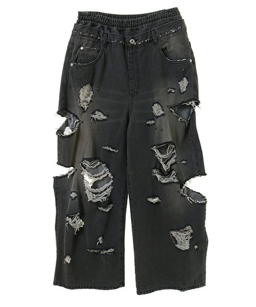 MULTI WAY DAMAGE LAYERED DENIM PANTS