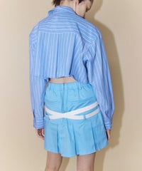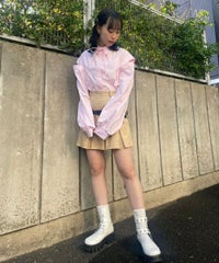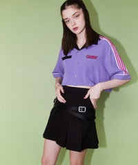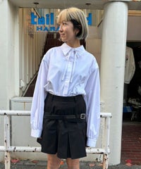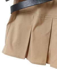 カレッジテイストなムードのボックスプリーツのスカート。 インナーパンツ一体型の仕様で機能性も◎ クロス状についたフェイクレザーのベルトで甘くなりすぎない印象に。 組み合わせるトップス次第で様々な着こなしをお楽しみいただけます。