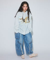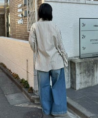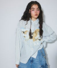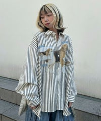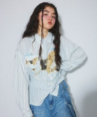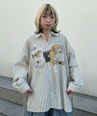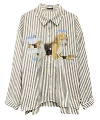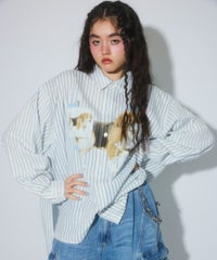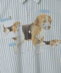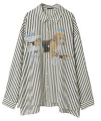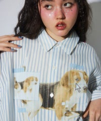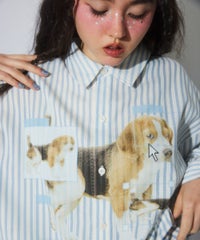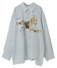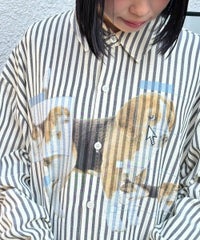柔らかなストライプ生地を使用した、プリント入りのオーバーシャツ。ルーズなサイズ感で、トップスはもちろん羽織としてもご着用いただけます。PC画面風のワンちゃんのフォトプリントは、生地と馴染むよう、マットでソフトな質感に仕上げております。デイリーユースしやすい優しいお色味で、春先に映える一着です。・・・・・・・・・・・・・・・・・・・・・・・透け感:なし・伸縮性:なし・生地の厚さ:普通・裏地:なし・・・・・・・・・・・・・・・・・・・・・・