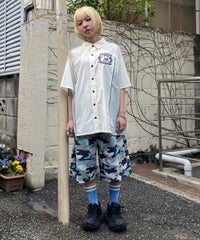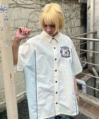 前後に施されたファニーなBEARSのアップリケがインパクト大なシャツ。 サイドの切り替えやパイピングが配色になっているのもポイント。 ゆったりしたオーバーサイズで、メンズライクなコーディネートがおすすめ◎ さらっと着れる薄めのブロード素材を使用しました。