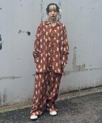 鳥獣戯画タッチで描かれたキャットモチーフの 総柄がインパクト大なチャイナシャツ。 様々なポーズや表情のキャットモチーフにもご注目。 オーバーシルエットでユニセックスでお楽しみいただけます。 シワになりにくくサラッとした軽やかなポリエステル素材を使用しており着心地も◎ トップスとしてはもちろん、前を開けて軽めのアウターとしてもご着用いただけます。 同シリーズのボトムとの組み合わせはもちろん、 ダメージデニムやトラックパンツを組み合わせたルーズな着こなしもオススメです。 主役級にキマる1枚です。 ・・・・・・・・・・・・・・・・・・・・・・ ・透け感:なし ・伸縮性:なし ・生地の厚さ:普通 ・裏地:なし ・・・・・・・・・・・・・・・・・・・・・・