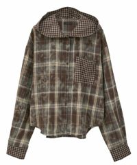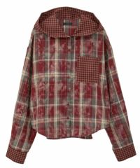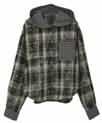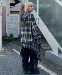 デビルの角付きフードが目をひく、チェック柄シャツ。