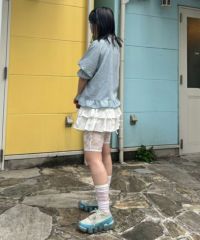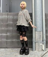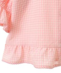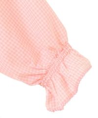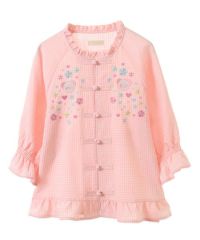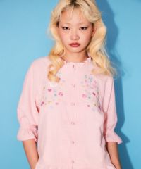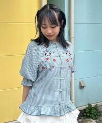 キャンディならではのチャイナディティールをガーリー雰囲気に落とし込んだブラウス。 袖部分はラグランにすることでパフスリーブのデザインでも着膨れして見えずすっきりとしたバランスに仕上げました。 袖口部分はホールド感のあるゴム仕様で機能性も◎ 身頃部分にはオリジナルキャラクターの「PEPE」とフラワーモチーフを組み合わせたグラフィックの刺繍がポイント。 レーヨン混のギンガムチェックを使用した軽やかな着心地で1枚ではもちろん、軽い羽織りとしても最適。 デニムなどのカジュアルなボトムはもちろん、ガーリーなテイストのボトムを組み合わせたスタイリングもオススメ。