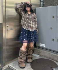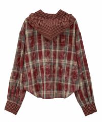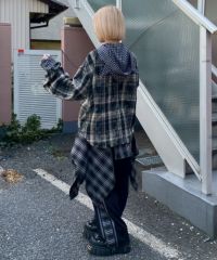 デビルの角付きフードが目をひく、チェック柄シャツ。