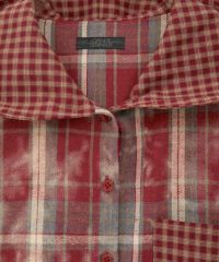 身頃にはグランジ感のある生地を使用し、細かいチェック柄生地と組み合わせてパッチワーク風に仕立てました。