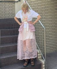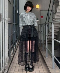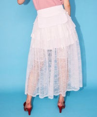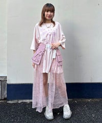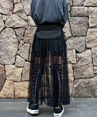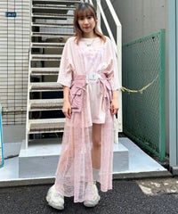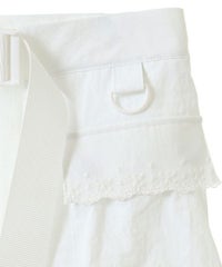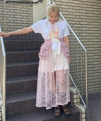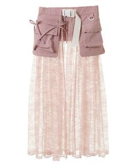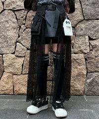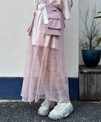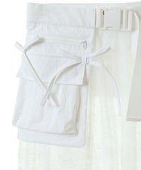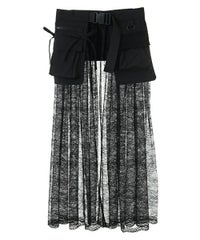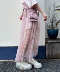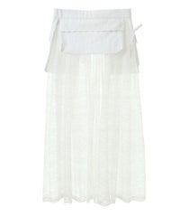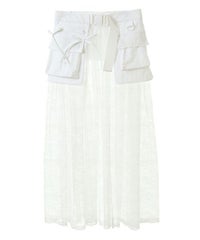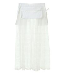 ナイロンタフタのベースに、チュールレースを合わせたベルト仕様の巻きスカート。 リボンやレースをあしらった立体的なポケットがポイント◎ スカートやパンツのレイヤードにも、ショートパンツを合わせてスカートとしても 様々なコーディネートがお楽しみいただけます。
