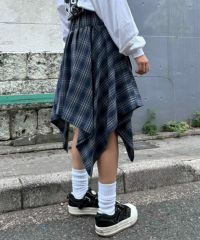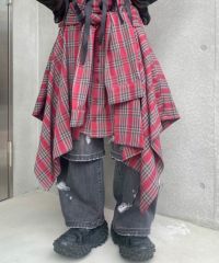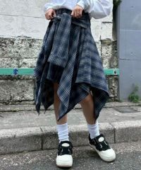 シャツを腰巻きしたようなデザインが目を惹くスカート。 チェック柄をチョイスしグランジテイストなムードを演出。 ウエスト部分はゴム仕様にすることでストレスフリーな履き心地。 スカートとしてはもちろん、パンツを組み合わせて レイヤードスタイルもお楽しみいただけます。 コーディネートのアクセントに最適です。 ・・・・・・・・・・・・・・・・・・・・・・ ・透け感:なし ・伸縮性:なし ・生地の厚さ:薄め ・裏地:なし ・・・・・・・・・・・・・・・・・・・・・・