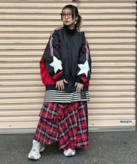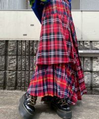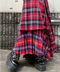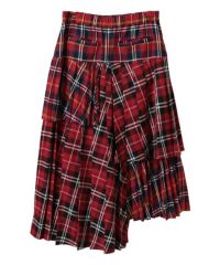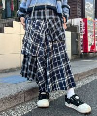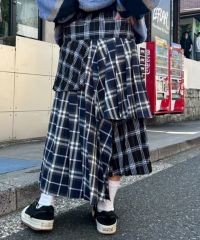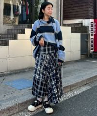 2種類のチェックと幅の異なるプリーツをレイヤード風に組み合わせた リメイク風のデザインが目を惹くプリーツスカート。 左右でスカート丈を変えたアシンメトリーなシルエットもポイント。 ウエスト部分はゴム仕様・腰回りにゆとりを持たせることで リラクシーな履き心地に仕上がりました。 後ろ側に片玉縁ポケット付きで機能性も◎ シャツやライン入りのニットを組み合わせた カレッジテストなスタイリングもオススメ。 秋の装いにぴったりなスカートです。 ・・・・・・・・・・・・・・・・・・・・・・ ・透け感:なし ・伸縮性:なし ・生地の厚さ:やや厚め ・裏地:なし ・・・・・・・・・・・・・・・・・・・・・・
