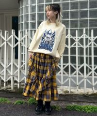 起毛感のあるチェック素材を使用したティアードスカート。 ボリューム感のあるフリルデザインが華やかでコーディネートの主役になるスカートです。 ウエストはゴム仕様で楽な着心地。 腰回りはすっきりとしており、着やせ効果も◎ ミモレ丈でスカート単体ではもちろん、フレアパンツなどを組み合わせた レイヤードスタイルにも最適。 ガーリな着こなしはもちろん、カジュアルなアイテムとも相性抜群。 キャンディらしい遊び心を効かせたスカートです。 ・・・・・・・・・・・・・・・・・・・・・・ ・透け感:なし ・伸縮性:なし ・生地の厚さ:普通 ・裏地:あり ・・・・・・・・・・・・・・・・・・・・・・