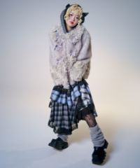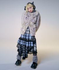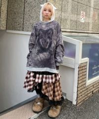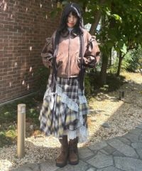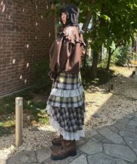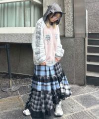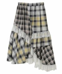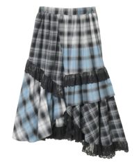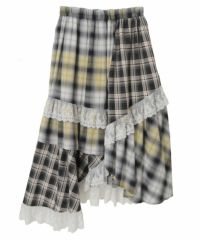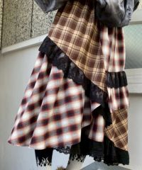 2種類のチェックを組み合わせたリメイク風デザインのスカート。
