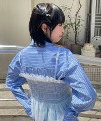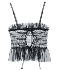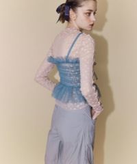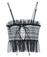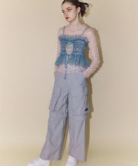 チュール素材を使用したキャミソール。 ランジェリーライクな雰囲気で女性らしい印象に。 前後でご着用可能な仕様でになっています。 ガーリーなスタイリングにはもちろん、ストリートなスタイリングに 組み合わせて小慣れ感のある着こなしもオススメです。