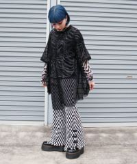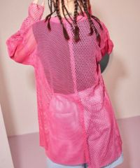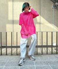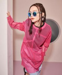 【商品詳細】2種類の大きさの異なるメッシュ素材をランダムに切り替えたトップス。 袖のカットオフのディティールもポイント。 モード感のある雰囲気に仕上がりました。 組み合わせ次第で幅広い着こなしをお楽しみいただけます。 一捻り欲しい時にぴったりな万能アイテム。