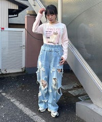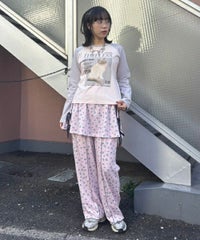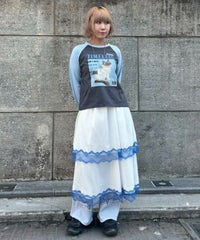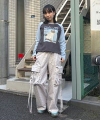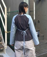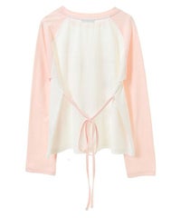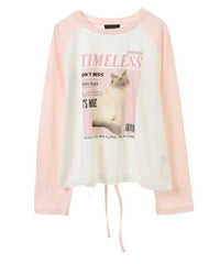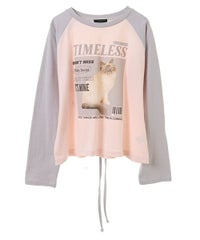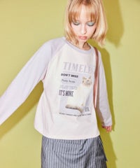 マガジン風なグラフィックが目を惹くラグラントップス。 サイドに垂らした共地のリボンは前後どちらでも結ぶことができ、お好みで調整していただけます。 トレンド感のある、コーディネートに取り入れやすいカラー展開です。
