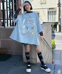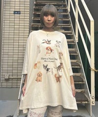 表情豊かなドッグ・キャットモチーフのグラフィックがインパクト大なラグラントップス。