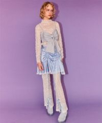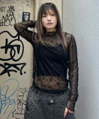 伸縮性のある星柄のストレッチチュールを使用したシースルートップス。 スタイリッシュなハイネックデザイン。 身頃のランジェリーライクなメロー切り替えで女性らしさをプラス。 程よくタイトなシルエットで1枚ではもちろん、レイヤードアイテムとしても最適。 春のアクセントカラーに最適なピンク、 ジャンルレスで活躍するオフホワイト・ブラックの3色をご用意。 スタイリングに一捻り加えたい時にぴったりです。