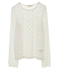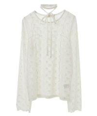 程よくストレッチの効いたリボン柄のストレッチチュールを使用したシースルートップス。 合わせやすいラウンドネックデザイン。 同素材で作られたチョーカー付き。首に巻きつけることで今季のムードを取り入れられるアイテム。 身頃のランジェリーライクなメロー切り替えで女性らしさをプラス。 程よいタイトなシルエットで1枚ではもちろん、レイヤードアイテムとしても最適。 春のアクセントカラーに最適なピンク、 ジャンルレスで活躍するオフホワイト・ブラックの3色をご用意。 カジュアルガーリーな着こなしに最適です。