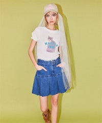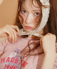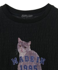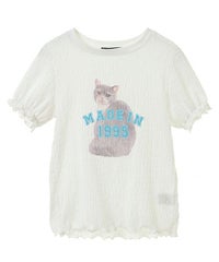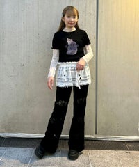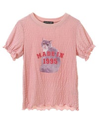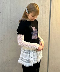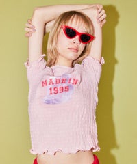 フロントのフォトプリントがキュートなトップス。 シャーリング加工された素材を使用し、カジュアルガーリーな印象に。 袖口にはゴムを入れ、ふんわりしたシルエットに仕上げました。 1枚で着るのはもちろん、シアーアイテムのインナーとしてもおすすめ◎