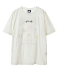 PEPEのぬいぐるみやフルーツetc…のフォトモチーフを フライヤー風にアレンジしたグラフィックを背面にプリントしたTシャツ。 フロント部分にはロゴをワンポイントでプリントしており着やすさも◎ スタンダードなシルエットのTシャツはサイズも選べ、オールシーズン活躍する定番アイテム。 今夏より新たにSサイズが登場!S、M、Lの3サイズ展開。