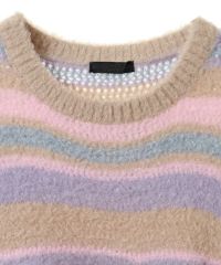 ロリポップのようなカラーリングがキュートなマルチボーダーニット。 ふわふわした軽やかな糸を使用し、着心地も抜群◎ 同カラー展開のビーニーと合わせたコーディネートもおすすめ。 フロントにはガーリーなCANDYロゴを刺繍しました。 ※伸びやすい糸のため、ハンガーを使用せずたたんで保管することをおすすめします。