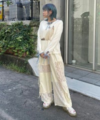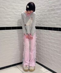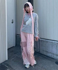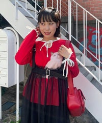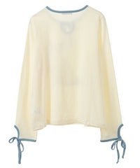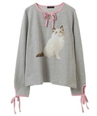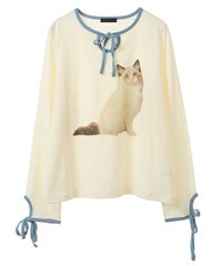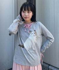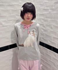 好評だったMEOW RIBBON TOPSのカラーリングを変え、ロンTで登場! 袖と胸元の開き部分はリボン結びにでき、コーディネートのアクセントに。 ボトムを選ばないシンプルですっきりとしたサイズ感です。