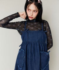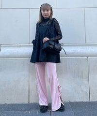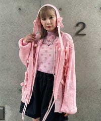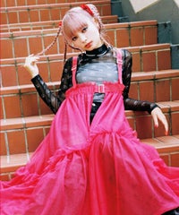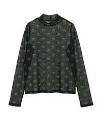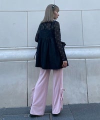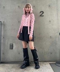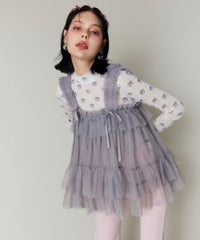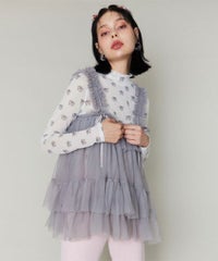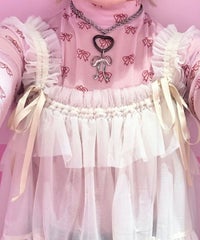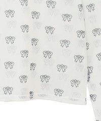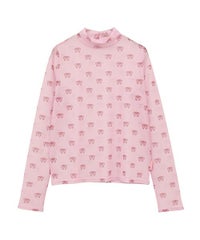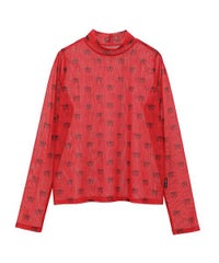 トレンド感のあるオリジナルのリボン総柄をプリントしたシアートップス。 伸縮性抜群なチュール生地を使用し、着心地も◎ ワンピースやニットとレイヤードしたり、1枚でモードなコーディネートにしたりとお好みで着用いただけます。 様々なテイストのスタイリングに使える万能アイテムです。