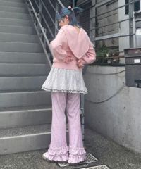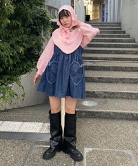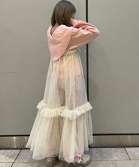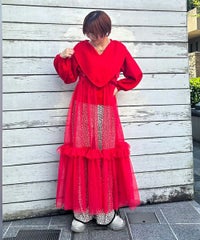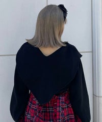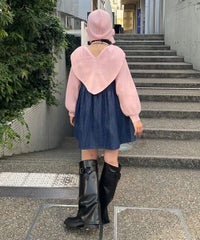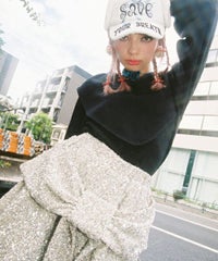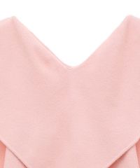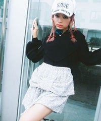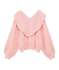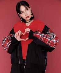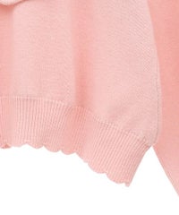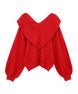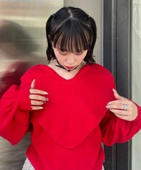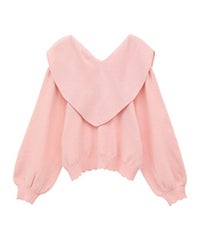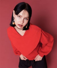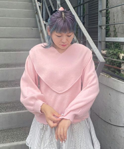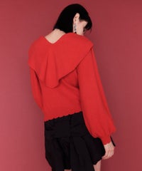 ハート型のビッグカラーがキャッチーなニットトップス。アクリル・ポリエステルの混紡糸を使用しており、柔らかくモチモチな肌触り。細番手を使用してハイゲージで編み立てた程よい肉感で、シーズンレスに着用可能。ハートの窪み部分により首元が綺麗に見え、抜け感や女性らしさを演出。袖はボリュームを持たせつつ、袖口はきゅっとリブで絞りメリハリのあるシルエットに。スカラップ状に編み立てた裾&袖口のリブもポイント。程よくゆったりとしたサイズ感で一枚でスタイリングが決まります。ホリデーシーズンに最適なキャンディらしい遊び心の効いた1枚です。