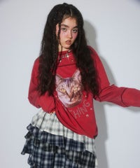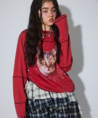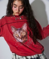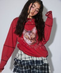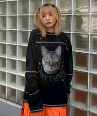 キャットとスタッズロゴを組み合わせたフォトプリントがインパクト大なトップス。