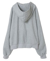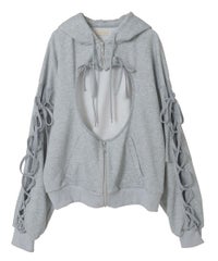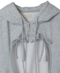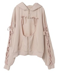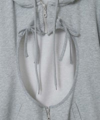 フロント部分にぽっかり空いた、ハート型の穴がポイントのフーディーです。