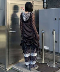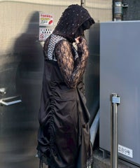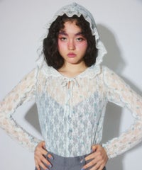 オリジナル柄プリントのストレッチレース生地で仕立てた、フード付きインナーです。