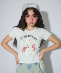 フロントにプリントされた、イラストレーターMs LUTRA氏描き下ろしのイラストがキュートなコンパクトTシャツ。