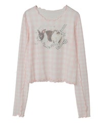 うさぎさん×リボンのフォトプリントがキュートなシアートップス。
