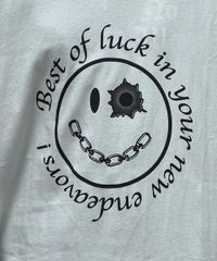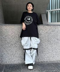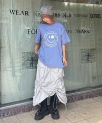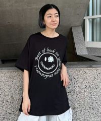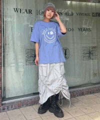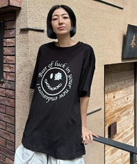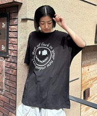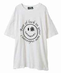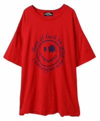 パンキッシュなスマイルモチーフのグラフィックのBIG Tシャツ ●26/-天竺生地を使用したオリジナルボディ ●やわらかいコットン100%の生地を使用し着心地も抜群 ●ヒップラインも隠れる安心感のある丈 ●様々な着こなしに対応できる適度なビッグシルエット ●ユニセックスで着こなしが楽しめるデザイン