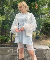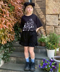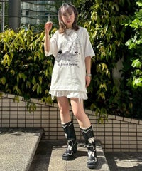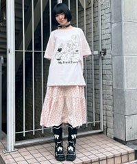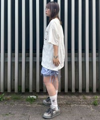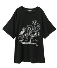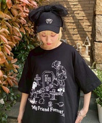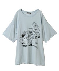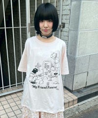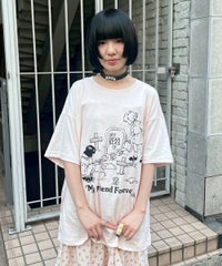 カルトタッチな女の子のグラフィックがインパクト大なグラフィックのBIG Tシャツ ●26/-天竺生地を使用したオリジナルボディ ●やわらかいコットン100%の生地を使用し着心地も抜群 ●ヒップラインも隠れる安心感のある丈 ●様々な着こなしに対応できる適度なビッグシルエット ●ユニセックスで着こなしが楽しめるデザイン