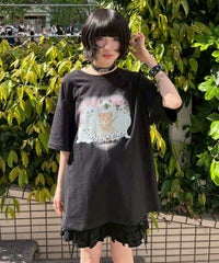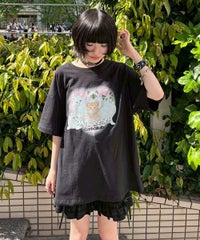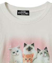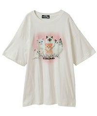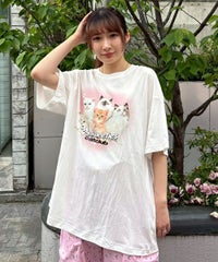 ガーリーな子猫のコラージュプリントのBIG Tシャツ ●26/-天竺生地を使用したオリジナルボディ ●やわらかいコットン100%の生地を使用し着心地も抜群 ●ヒップラインも隠れる安心感のある丈 ●様々な着こなしに対応できる適度なビッグシルエット ●ユニセックスで着こなしが楽しめるデザイン