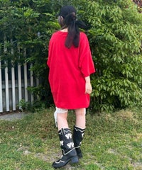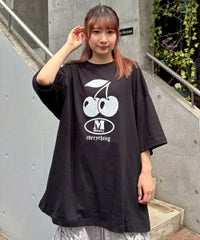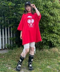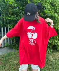 キャッチーなチェリーとロゴのグラフィックのBIG BIG Tシャツ ●26/-天竺生地を使用したオリジナルボディ ●やわらかいコットン100%の生地を使用し着心地も抜群 ●ヒップラインも隠れる安心感のある丈 ●ゆったりとルーズに着られるオーバーサイズシルエット ●ユニセックスで着こなしが楽しめるデザイン ●背の低い方が着用した場合、ワンピースとしてもご着用いただけます
