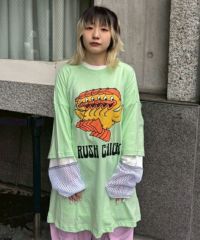 アメコミタッチのインパクトのある連なるダッグモチーフのグラフィックのBIG BIG Tシャツ ●26/-天竺生地を使用したオリジナルボディ ●やわらかいコットン100%の生地を使用し着心地も抜群 ●ヒップラインも隠れる安心感のある丈 ●ゆったりとルーズに着られるオーバーサイズシルエット ●ユニセックスで着こなしが楽しめるデザイン ●背の低い方が着用した場合、ワンピースとしてもご着用いただけます