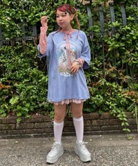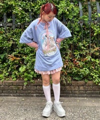 ファンシーなフォトプリントグラフィックのBIG Tシャツ ●26/-天竺生地を使用したオリジナルボディ ●やわらかいコットン100%の生地を使用し着心地も抜群 ●ヒップラインも隠れる安心感のある丈 ●様々な着こなしに対応できる適度なビッグシルエット ●ユニセックスで着こなしが楽しめるデザイン