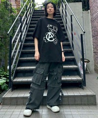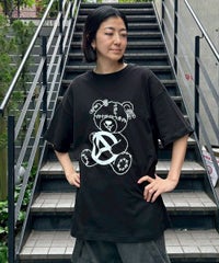 アナーキーマークをハグしているパンキッシュなくまのぬいぐるみのグラフィックのBIG Tシャツ ●26/-天竺生地を使用したオリジナルボディ ●やわらかいコットン100%の生地を使用し着心地も抜群 ●ヒップラインも隠れる安心感のある丈 ●様々な着こなしに対応できる適度なビッグシルエット ●ユニセックスで着こなしが楽しめるデザイン